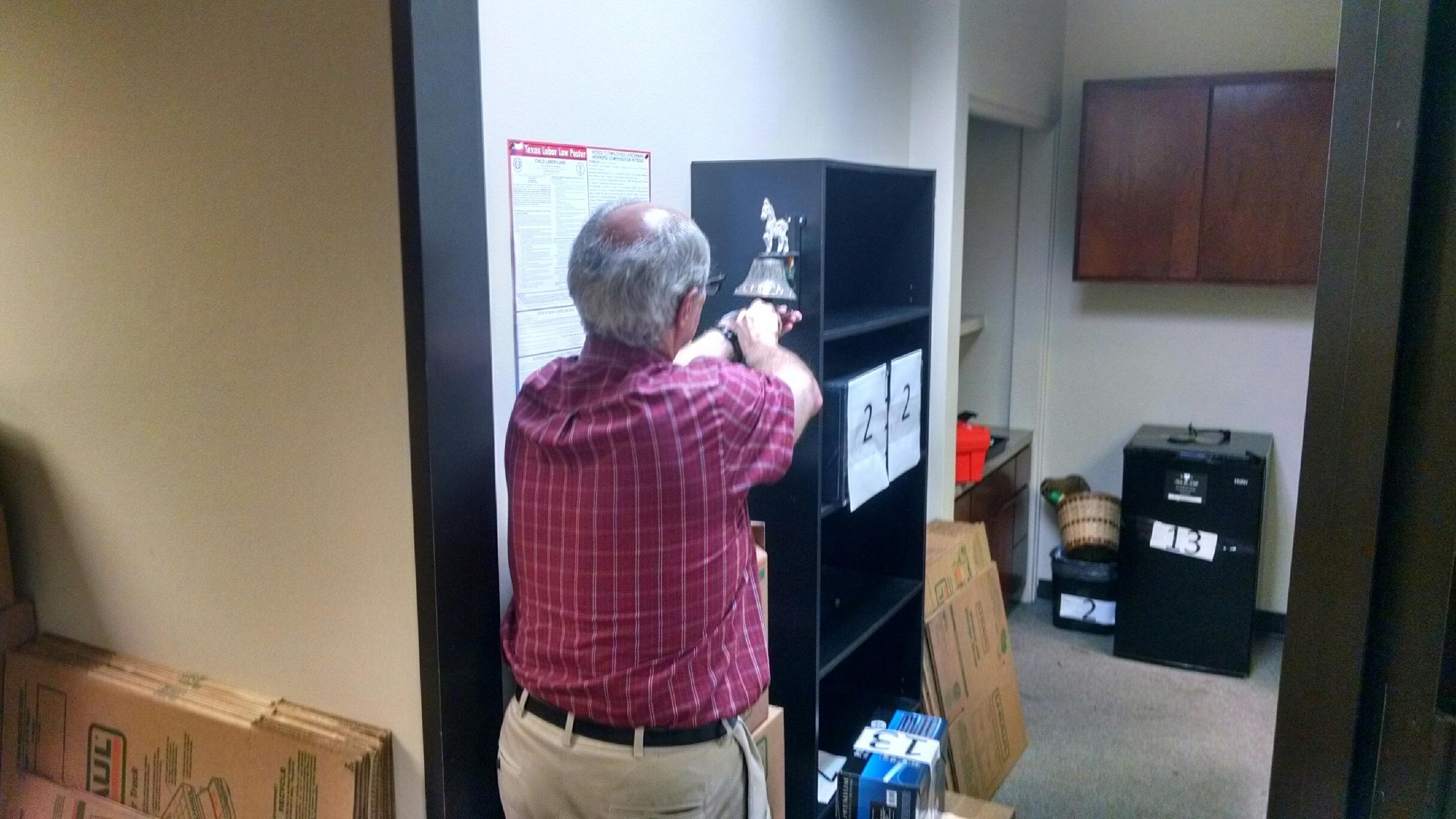 photo 2 Published at 2430 × 1368 in First Cornerstone Group, LLC., Moves to New Houston Offices Marketing Director Mark Lauber removes First Cornerstone Group’s treasured celebration bell for safe transport to First Cornerstone Group’s new offices.